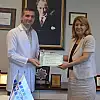 Ermir Roçi, sertifikasını hastanenin genel müdürü Belgin Danış'ın elinden aldı.