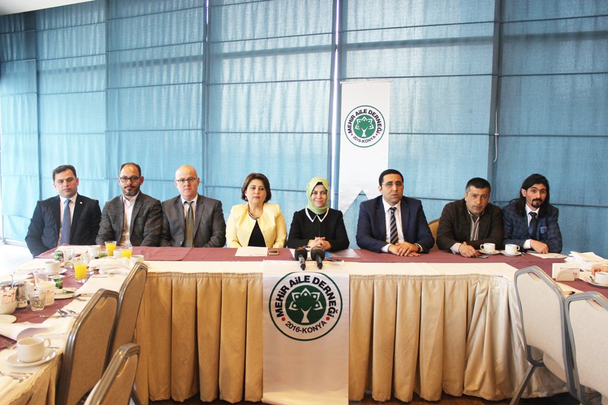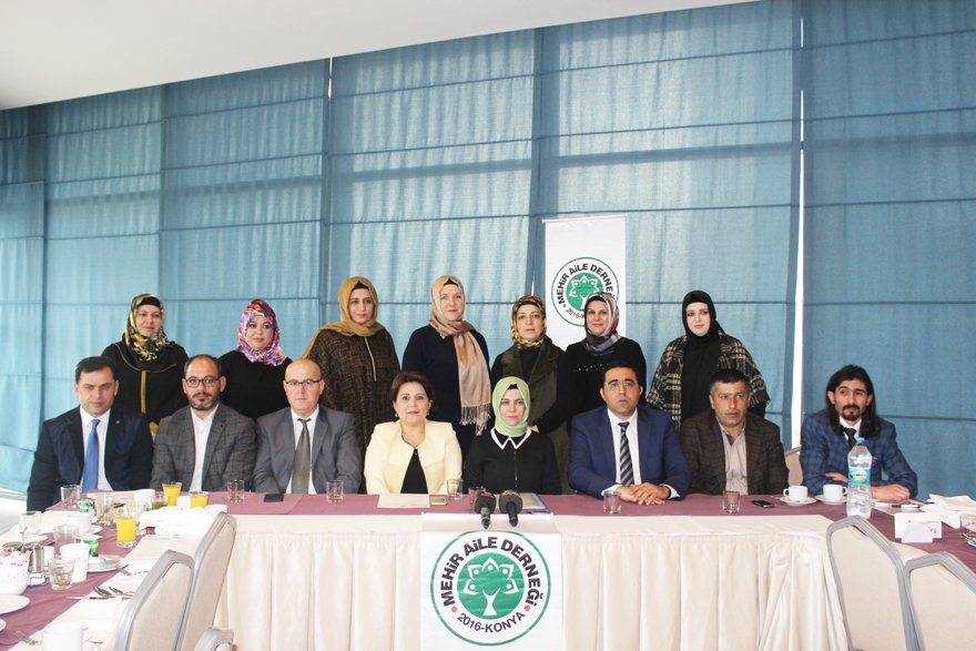 Basın toplantısında konuşmayı Yönetim Kurulu Başkanı Aygül Erdem yaptı. Konuşmanın başında yönetim kurulu üyelerini tanıtan Aygül Erdem aile kurumunun toplum için öneminden bahsetti. Konya başta olmak üzere yurtiçi ve yurtdışından birçok ihtiyaç sahibine ulaştıklarını dile getiren Erdem; “Aile toplumun çekirdeğidir, toplumun aynasıdır. Mutlu bireyin aileyi, mutlu ailenin de mutlu toplumu oluşturduğu bilincindeyiz. Bu bilinçle Konya’mızın 31 ilçesinde, ülkemizin 81 ilinde ve yurtdışındaki ihtiyaç sahibi nişanlı çiftlere hizmet etmek için Mehir Vakfı çatısı altında faaliyet gösterecek olan Mehir Aile Derneği’mizi 02.06.2016 tarihinde bir grup iş adamı ve akademisyenle birlikte kurduk.” dedi.