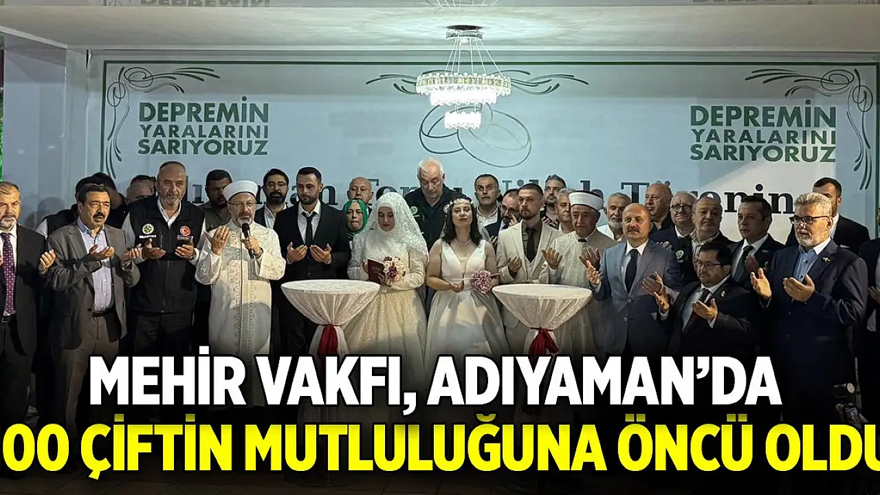 Mehir Vakfı yuvalar kurmaya devam ediyor. Adıyaman Valiliği, Konya İl Müftülüğü, Adıyaman İl Müftülüğü, Gençleri Evlendirme ve Mehir Vakfı ve Mehir Aile Derneği tarafından Adıyaman'da 100 Çiftin Toplu Düğün ve Nikah Töreni yoğun katılımla yapıldı. Törende konuşan Diyanet İşleri Başkanı Prof. Dr. Ali Erbaş, Aile toplumumuzun bel kemiğidir. Burada 100 çiftimizin mutluluğuna şahitlik ediyoruz.' dedi.