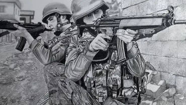 TSK mensuplarının terör operasyonlarında hafızalarda yer edinen fotoğraflarının kara kalemle resmedilmesiyle oluşan eserlerin yer aldığı 'Mehmetçiğin Gözüyle Mehmetçik' sergisi klip haline getirildi.