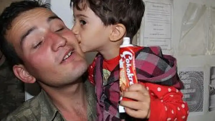 Soğuktan donmak üzere olan çocukları battaniyelere sarıp, üzerlerindeki parkaları giydiren Mehmetçik, Sualtı Hudut Bölüğünde misafir ettikleri gruba yemek, çay ve süt ikramında bulundu.