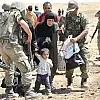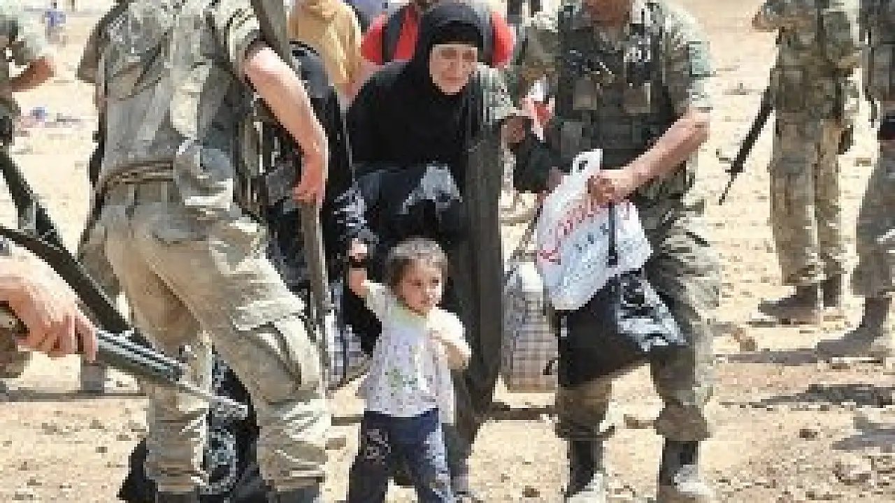 Aralarında üst düzey komutanların da olduğu askerler, sığınmacıların eşyasını ve yorgunluktan yürüyemeyen Suriyeli kadınların çocuklarını taşıdı.