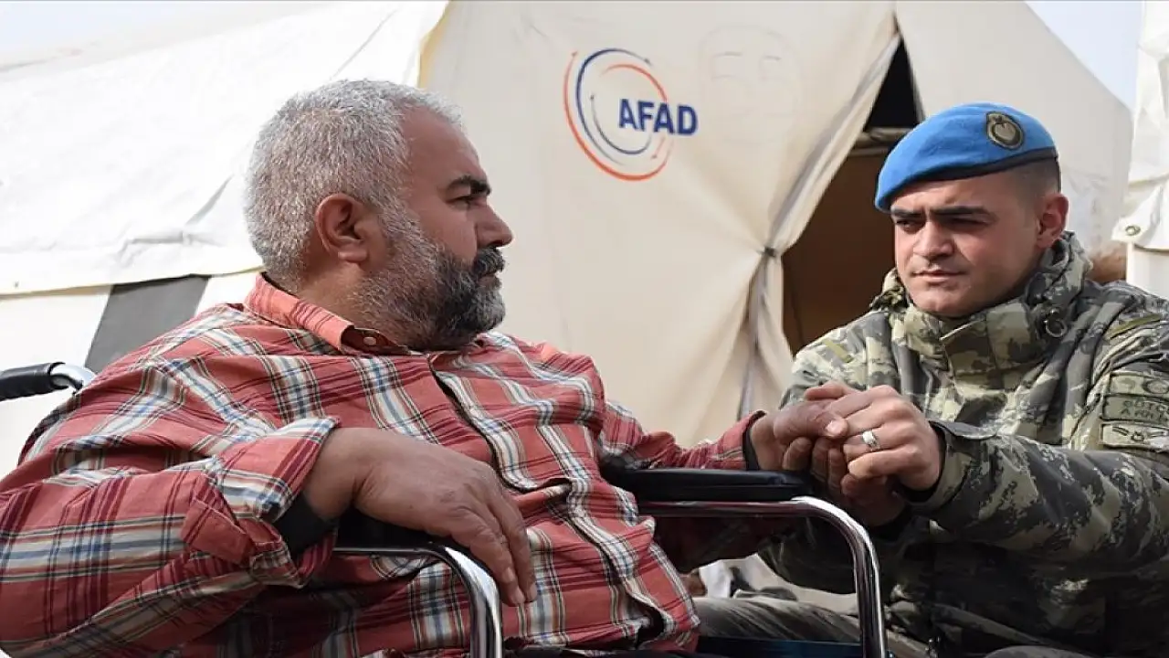 Mehmetçikten engelli depremzedeye tekerlekli sandalye