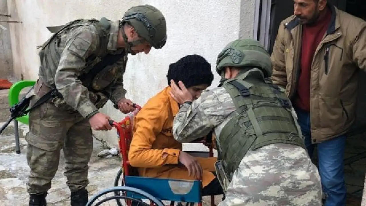 - Mehmetçikten terör örgütünün mayınlı saldırısında yaralanan kız çocuğuna tekerlekli sandalye