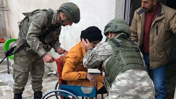 Mehmetçikten terör örgütünün mayınlı saldırısında yaralanan kız çocuğuna tekerlekli sandalye