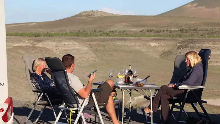 Karavanları ile Yunanistan'dan yola çıkan ve Türkiye'de birçok yeri gezdikten sonra Karapınar'a ulaşan İsviçreli çiftler Philippe ve Petra Müller ile Sabine ve Reto Huber, Avusturyalı Walter Frashing ve eşi Sandra, Meke Gölü'nde mola verdi. Yürüyüş yapıp, gün batımını ve gün doğumunu izleyen turistler burada kamp yaptı.