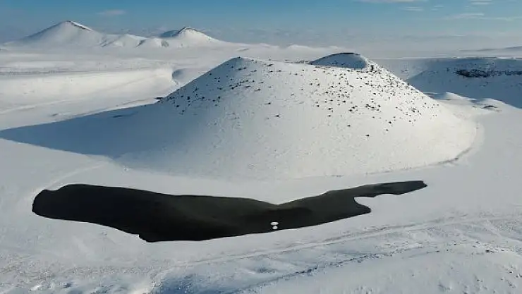 Bir süredir etkili olan kar yağışı Meke Gölü'nde bambaşka görüntüler ortaya çıkardı. Dünyanın nazar boncuğu olarak bilinen Meke Gölü, kar yağışıyla birlikte ziyaretçilerin akına uğradı.