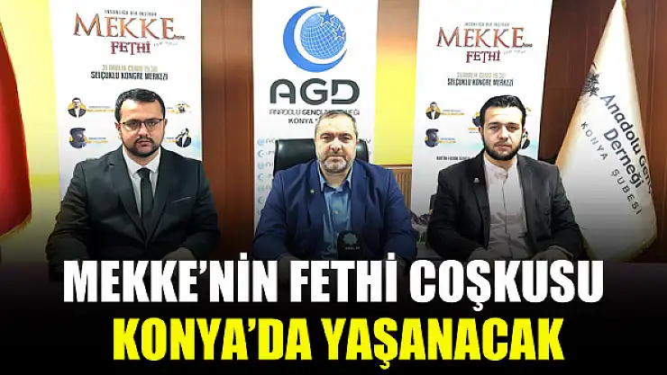 Anadolu Gençlik Derneği’nin (AGD), her yıl Türkiye’nin 81 ili ve yüzlerce bölgesinde, farklı noktalarda tertiplediği Mekke’nin Fethi programı bu yıl da büyük bir coşkuyla kutlanacak. Mekke’nin Fethi’nin 1391. yılında düzenlenecek program yarın akşam başlayacak.Selçuklu Kongre Merkezinde gerçekleştirilecek program öncesi basın açıklaması yapan Anadolu Gençlik Derneği Konya Şube Başkanı Ceylani Kılıç, Konyalıları programa davet etti. Kılıç, “Bilindiği üzere Mekke Peygamber Efendimiz Hz. Muhammed (SAV) komutasındaki İslam ordusuyla Ocak 630 tarihinde fethedilmiştir. Biz bu programları düzenlerken fethin hicri ya da miladi yıldönümünü ya da fethin kronolojisini konuşmadan ziyade fetih ruhunu kuşanmanın derdindeyiz” dedi.