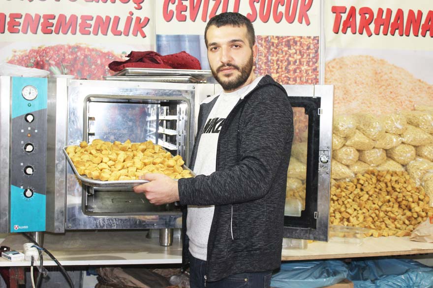 Sattıkları ürünlerin köy ve ev üretimi olduğunu, 60 ev hanımı ile çalıştıklarını belirten Beypazarı Standı sorumlusu Anıl Bulut; “Ankara Beypazarı Saray köyünden geliyoruz. Bütün ürünler kendi köyümüzün ve evimizin ürünleridir. Ürünlerimizin hazırlanmasında 60 tane ev hanımı çalışıyor. Beypazarı sarmasını tanıtıyoruz, ev baklavamız var 80 katlı, oklava baklavamız var köy unuyla yapılan eriştelerimiz var. Kilosunu 10 liraya satıyoruz Konya halkına tanıtmak için bu fiyatlarla satıyoruz. Hem kaliteli hem güzel ürünlerimizi Konya halkına tanıtmak üzere geldik buraya. Sarmalarımız Beypazarı’nın yapraklarıyla yapılıyor. Taş fırında 8 saatte pişirilir içinde özel karışımlarımız bulunuyor. Beypazarı Kuru’muzda Buzağı ilk doğduğunda çıkan sütle yapılan bir kurudur. Bu kuruyu sadece Beypazarı’nda bu şekilde yapan biziz. Tarhanamız Beypazarı’nın domatesi, biberi, soğanıyla yapılır. Yani bizim ürünlerimizin hepsi sebzesinden soğanına kadar doğal köy ürünleridir. Konyalılardan ürünlerimize çok ilgi ve talep gördük. Konya’da bayilerimiz de var onlara da ürünler gönderiyoruz. Konya halkı bizi, biz Konya halkını seviyoruz.” dedi.