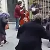 İstiklal'de kaydedilen görüntülerde, sokakta caz yapan müzisyenlere, teyzeler danslarıyla eşlik ederken görülüyor.