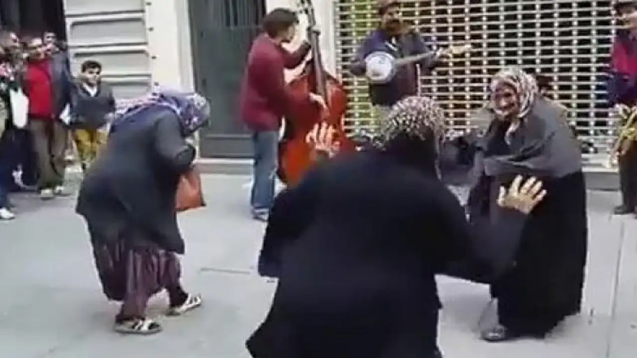 Taksim İstiklal Caddesi'nde mendil satan teyzeler, caz çalan orkestraya danslarıyla eşlik etti. Mendilci teyzelerin caz müzik eşliğindeki dansı sosyal medyada büyük ilgi gördü