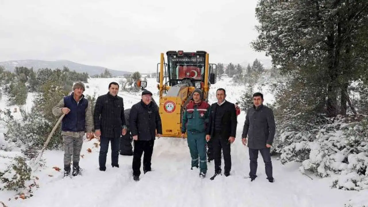 Menteşe ilçesinde yoğun kar yağışı ile birlikte belediye ekiplerinin Menteşe'nin kırsal ve merkez tüm mahallelerinde saha çalışmalarına aralıksız devam ediyor.