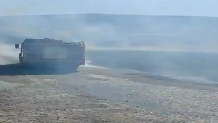 Soğutma çalışmasının yapıldığı tarlada yangının cam kırığından çıktığı tahmin ediliyor.