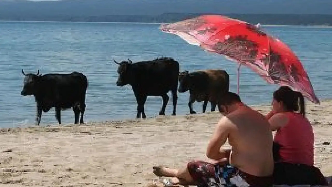 İneklerin plaj keyfi, bölgeye gelenler içinde farklı bir görüntü oluşturuyor. Bir süre plaj keyfi süren inekler, daha sonra ahırlarına doğru çobanlarının yönlendirmesiyle yol alıyor.