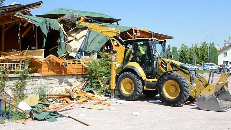 Meram Yeni Yol Caddesi üzerinde Konya Fenerbahçeliler Derneği tarafından ruhsat ve eklerine aykırı olarak yapılan ve Vitrin Kafe olarak faaliyet gösteren kaçak yapı, Meram Belediyesi Encümeni'nin verdiği yıkım kararının ardından yıkıldı.