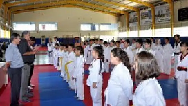 Meram Belediyesi tarafından açılan tekvando kursuna devam eden 100 öğrenci, yapılan sınavla bir üst kuşağa terfi etti.