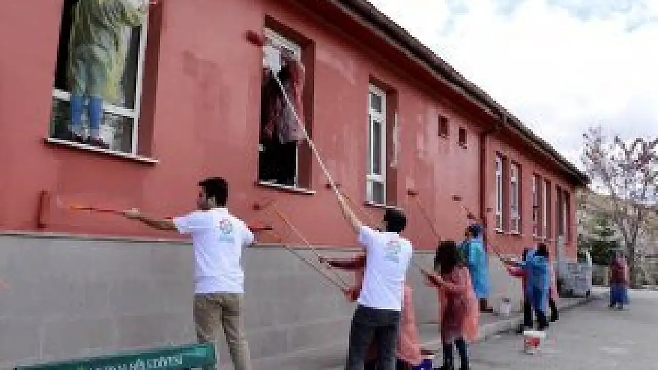 Konya’nın merkez Meram İlçe Belediyesi Gençlik Meclisi üyeleri, “Hayata Renk Kat” projesi çerçevesinde şehir merkezine 50 kilometre mesafede bulunan Yeşildere Mahallesi’ndeki ilkokulun duvarlarını boyadı.