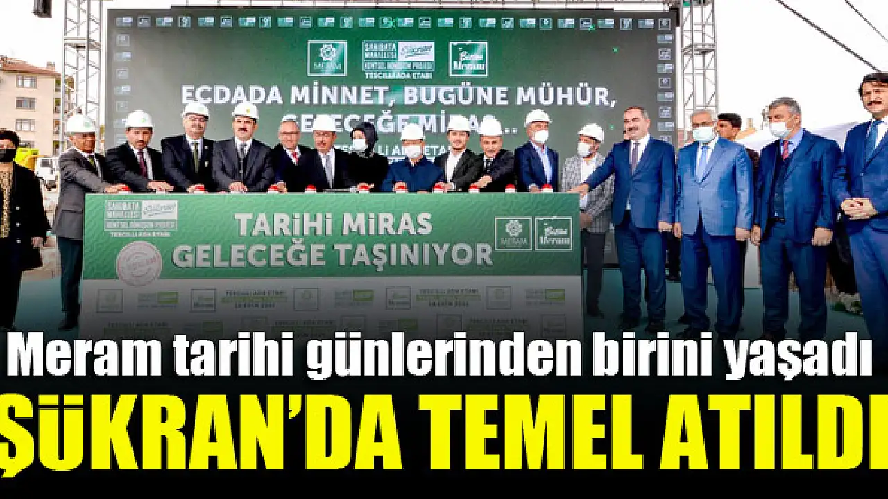 Meram'ın ve Konya'nın tarihi yatırımlarından biri olan Şükran Kentsel Dönüşüm Projesi'nde ilk temel atıldı. 5 ayrı etaptan oluşan projenin, tarihi binaların yeniden inşa edilip bir ada içinde toplanacağı 'Tescilli Ada Etabı'nın temel atma töreni Konya siyaseti ve bürokrasisinin önemli isimlerini buluşturdu.