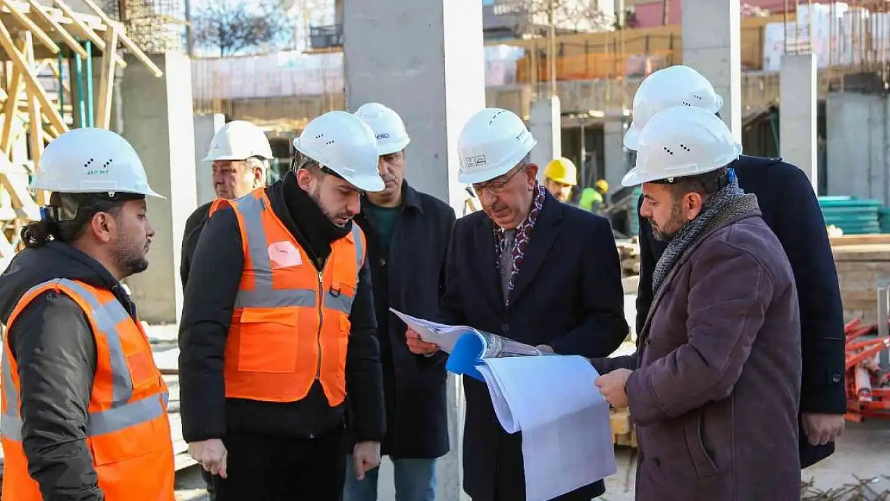 Meram Belediye Başkanı Mustafa Kavuş, hızla yükselen Yaka Sosyal Tesisi inşaatında incelemelerde bulundu.