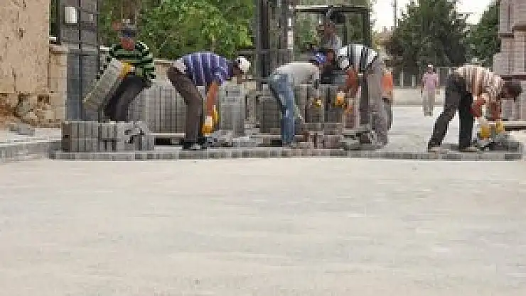 Konya'nın merkez Meram Belediyesi, parke, bordür ve tretuvar kaplama çalışmalarına devam ediyor.
