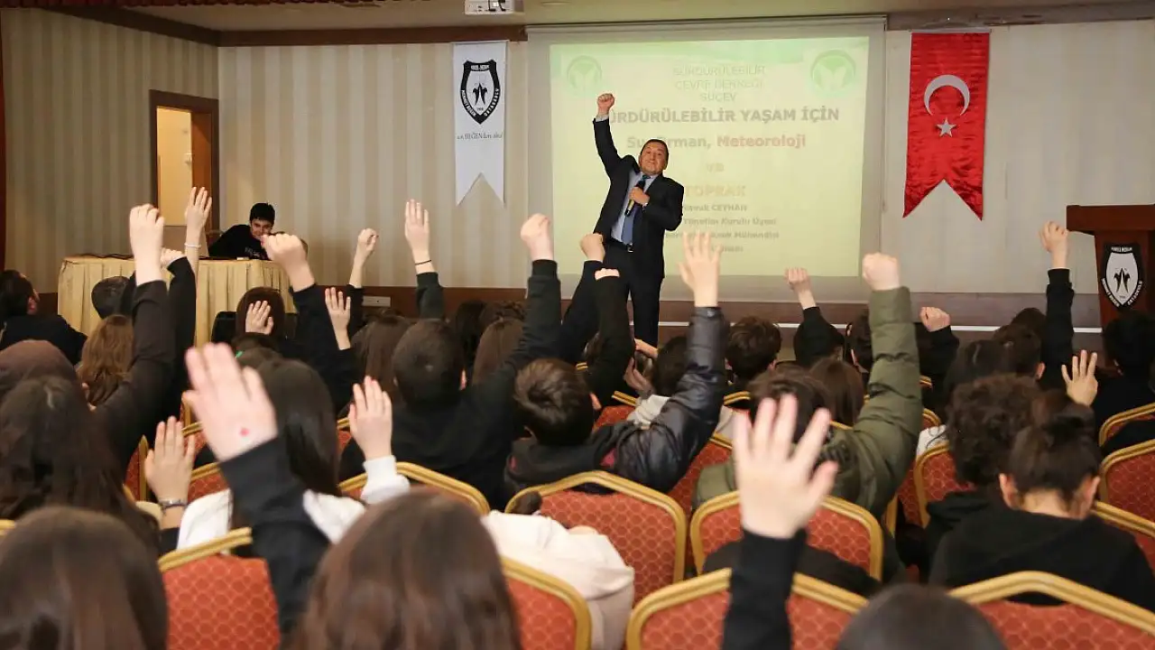 Meram Belediyesi İklim Değişikliği ve Sıfır Atık Müdürlüğü ekipleri, 18 Mart Geri Dönüşüm Günü, 21 Mart Ormancılık Günü, 22 Mart Su Günü, 23 Mart Meteoroloji Günü ve 30 Mart Sıfır Atık Günü kapsamında Mehmet Beğen Ortaokulu’nda geniş kapsamlı bir farkındalık programı düzenledi. Etkinlik kapsamında, çevreye duyarlı bireyler yetiştirmek ve doğaya karşı sorumluluk bilinci kazandırmak amacıyla öğrencilere çeşitli konular anlatıldı. İklim değişikliği ve sıfır atık konusunda M. Yıldırım Gündüz, su, orman ve toprak konularında ise Namık Ceylan bilgilendirici sunumlar gerçekleştirdi. Öğrencilere çevre kirliliğinin dünyamıza verdiği zararlar, sıfır atık uygulamalarının önemi ve suyun sürdürülebilir kullanımı gibi hayati konular aktarıldı.