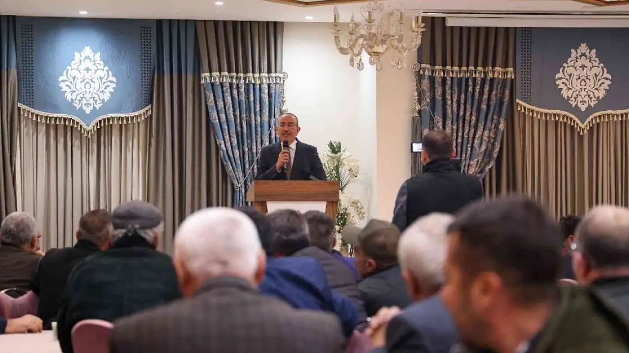 Konya Haberi... Meram Belediye Başkanı Mustafa Kavuş, 2022 yılı değerlendirmeleri ve 2023 yatırım bilgilendirmesi için ilçedeki muhtarlarla bir araya geldi. Başkan Kavuş, 'Yatırım ve icraatlarla dolu bir yılı daha bitirip, yeni yıla 'bismillah' dedik. Yeni yılın daha da bereketli olacağı inancındayız. 2022 yılında Meram'a, planlamamızın ve yılbaşında belirlediğimiz bütçemizin çok üstünde yatırım kazandırdık.' dedi.