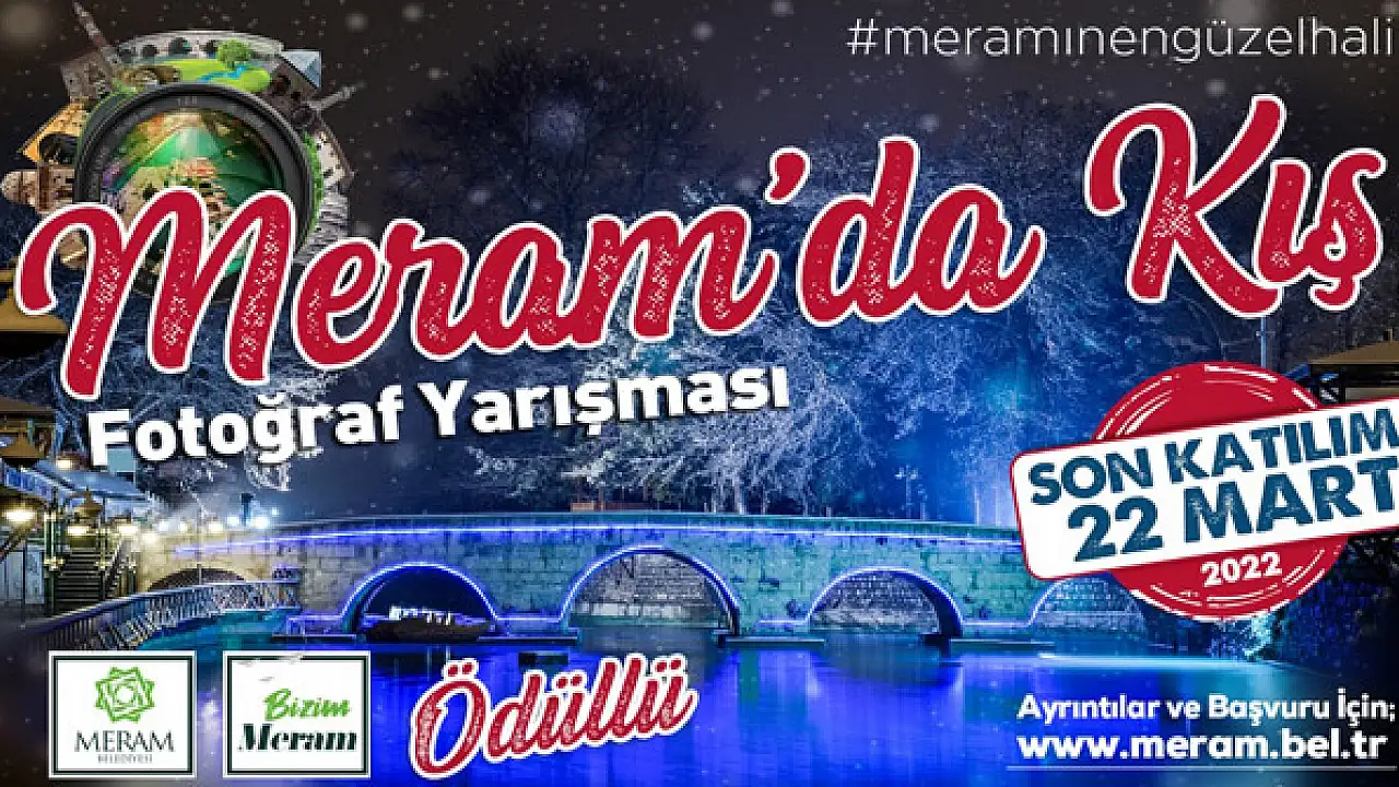 Meram Belediyesi tarafından düzenlenen ‘Meram’da Kış Fotoğraf Yarışması’ start aldı. 29 Ocak’da başlayan yarışmanın son katılım tarihi ise 22 Mart 2022. 28 Mart’ta toplanacak seçici kurul sonuçları 4 Nisan’da duyuracak.