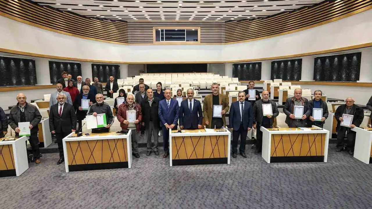 Başkan Mustafa Kavuş, konuşmasının ardından mahalle muhtarları ile birlikte hak sahiplerine tapularını dağıttı.