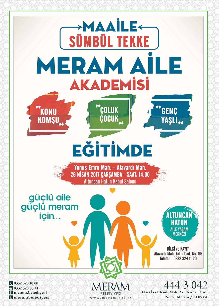 Meram Belediyesi Kadın ve Aile Hizmetleri Müdürlüğü tarafından, toplumun çekirdeğini oluşturan aile kurumuna yönelik aile akademisi eğitim seminerleri başlıyor.
