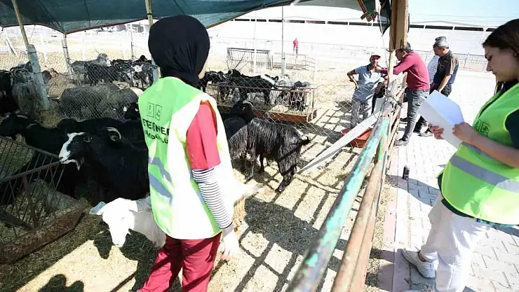 Kurbanlık taşıyan araçlar Meram Belediyesi ekipleri tarafından dezenfekte edilerek alana alınırken, veteriner ekipleri de satış için getirilen hayvanları küpe ve pasaport kontrolleri sonrası sağlık kontrolünden geçiriyor.