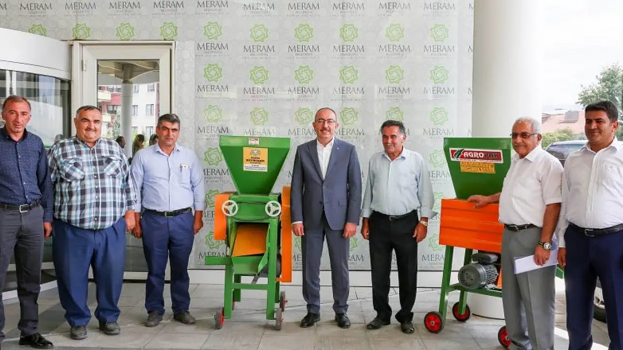 Konya Büyükşehir Belediyesinin, Yeni Büyükşehir Yasası kapsamında Konya genelindeki çiftçilere verdiği destek çerçevesinde Meramlı çiftçilere üzüm sıkma makinesi dağıtıldı.