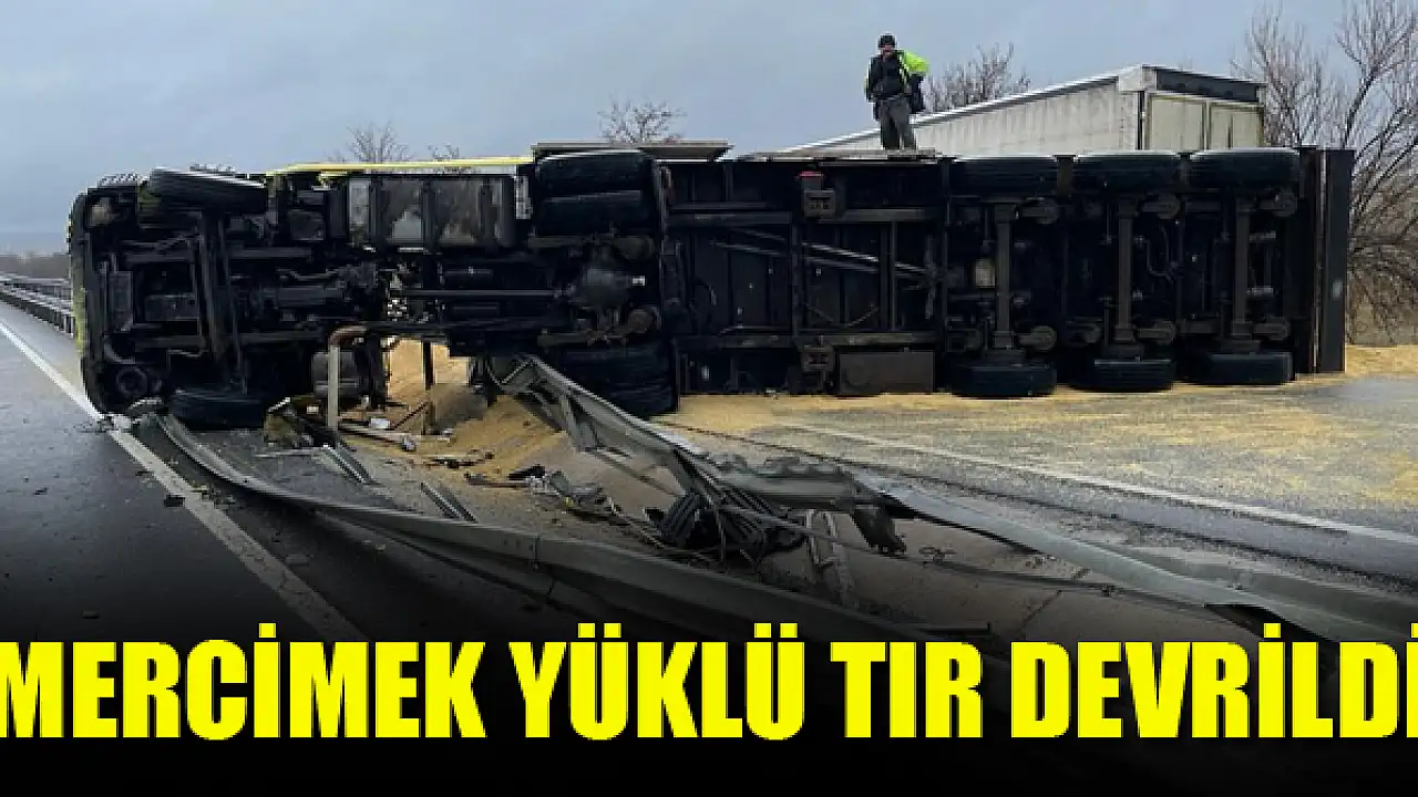 Konya'nın Kulu ilçesinde mercimek yüklü tırın devrilmesi sonucu sürücü yaralandı. Ergün Mantar idaresindeki 18 AL 848 plakalı mercimek yüklü tır, Konya-Ankara kara yolu Kulu makası yakınlarında, sürücüsünün direksiyon hakimiyetini kaybetmesi sonucu devrildi. Durumun bildirilmesi üzerine olay yerine polis, itfaiye ve sağlık ekipleri sevk edildi. Araçta sıkışan sürücü Mantar, itfaiye ekiplerince çıkarılarak ambulansla Kulu Devlet Hastanesi'ne kaldırıldı. Devrilen tırdan dökülen mercimek, karayolları ekiplerince temizlendikten sonra yol yeniden trafiğe açıldı.