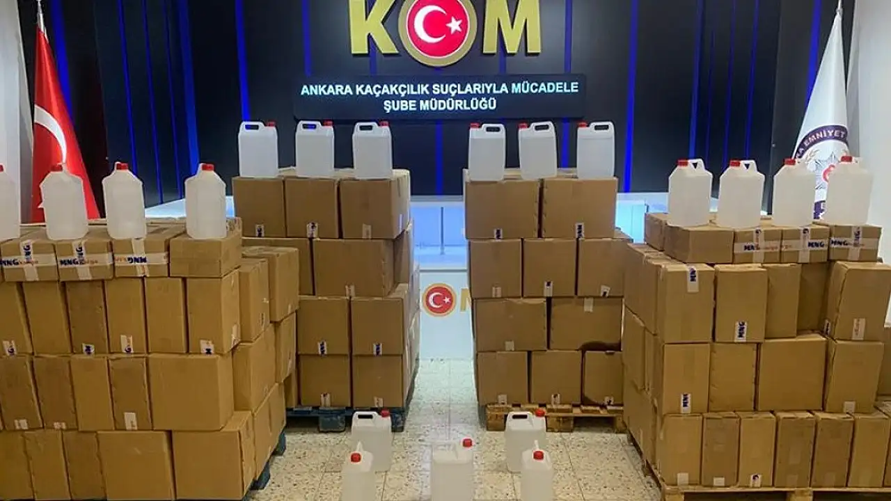 Merdiven altı tesiste kozmetik sanayinde kullanılan acı etil alkollerin denatüre edilerek, sahte alkollü içki üretiminde kullanılır hale getirildiği ve pet şişelerde satışa hazır hale getirildiği bilgisini alan Ankara Emniyet Müdürlüğü Kaçakçılık Suçlarıyla Mücadele Şube Müdürlüğü ekipleri, Mamak'ta bir depoyu takibe aldı.