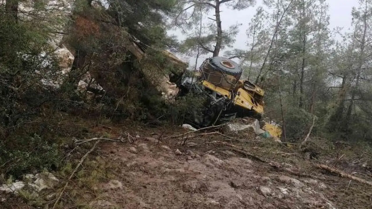 Muğla'nın Kavaklıdere ilçesindeki bir mermer ocağında moloz dökümü esnasında gere geri giden kamyon uçuruma yuvarlanması sonucu bir kişi yaralandı.