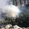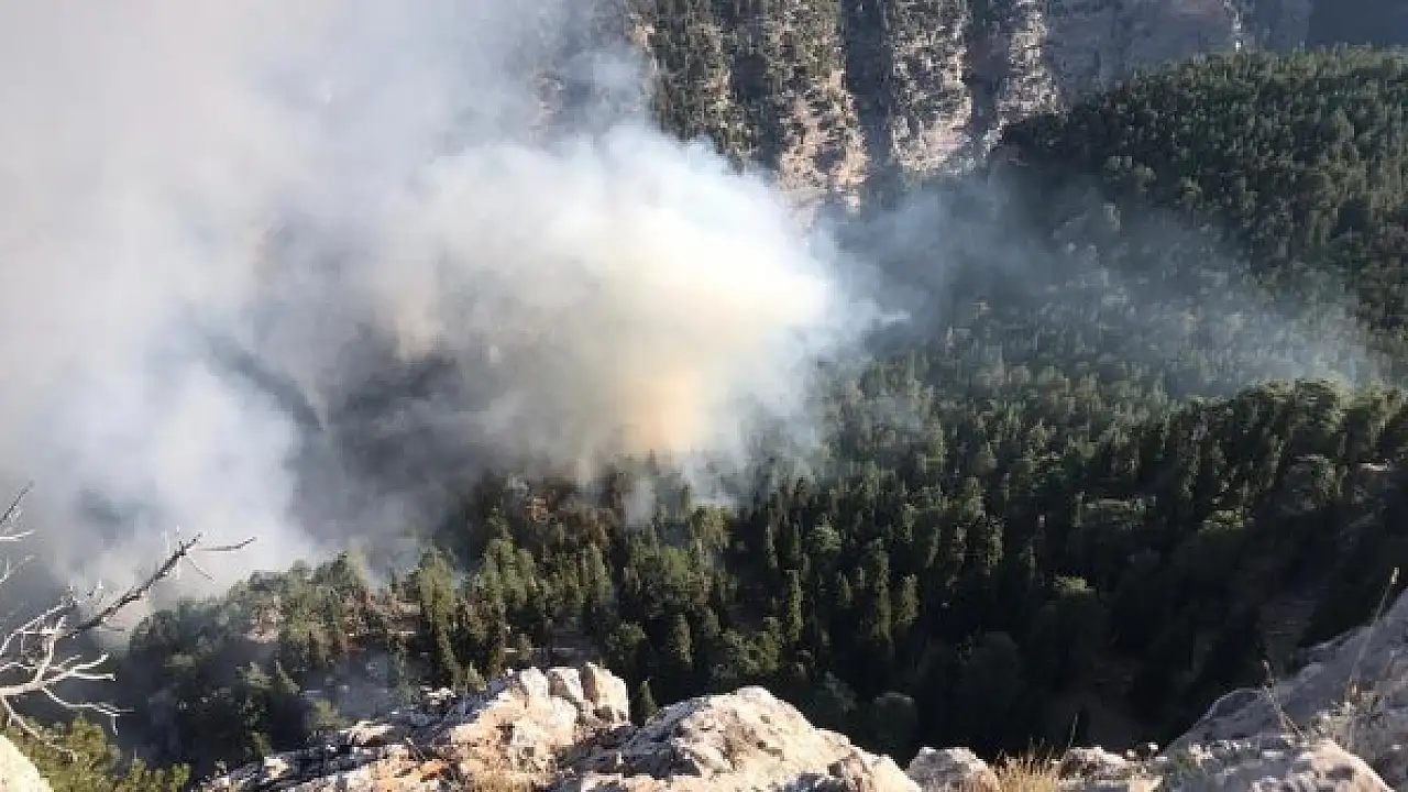 Sarp arazi yapısı nedeniyle alevlere müdahalede güçlük çeken ekipler, yangını kontrol altına alma çalışmalarını sürdürüyor.