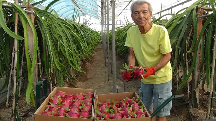 Mersin'in Silifke ilçesinde ejder meyvesi olarak bilinen pitaya (ejder meyvesi) bahçesinde, sezonun ilk ürün hasadı yapıldı.