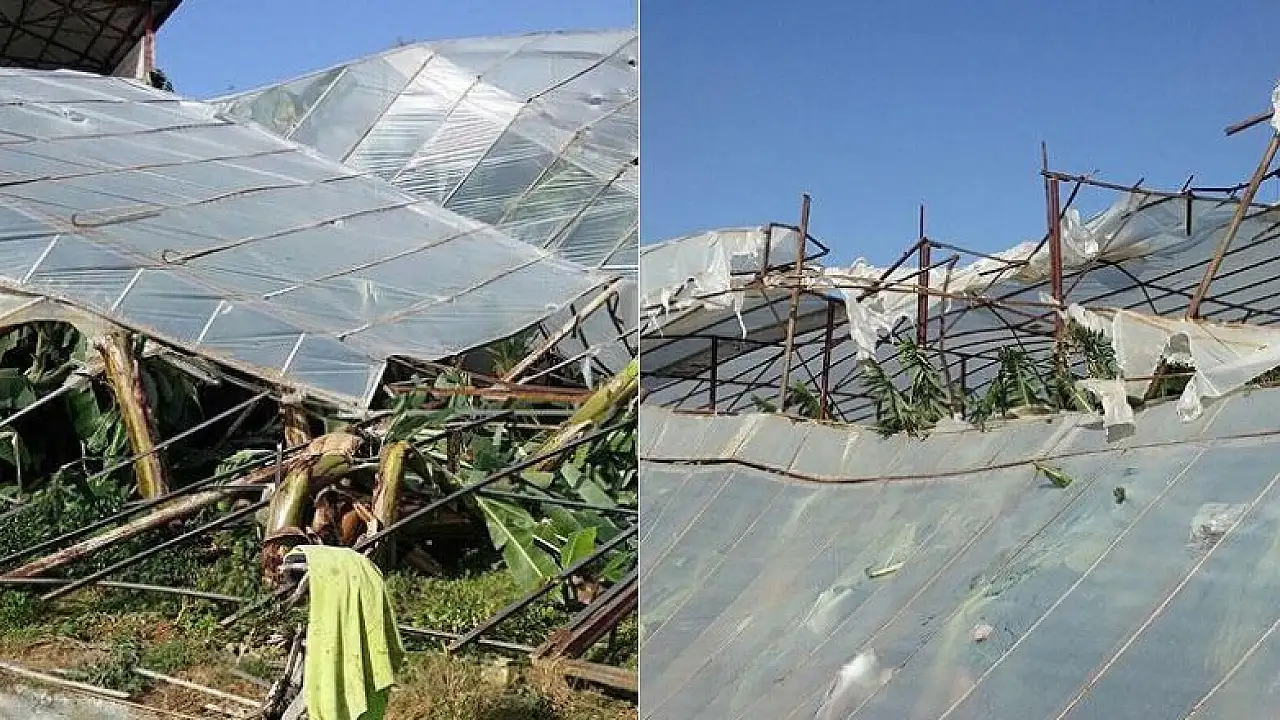 Mersin'in Bozyazı ilçesinde çıkan hortum, yaklaşık 20 dönüm muz serasında zarara yol açtı.