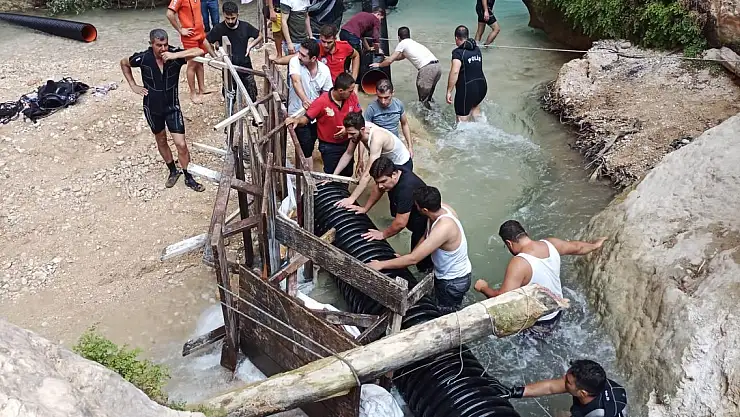 Mersin'in Erdemli ilçesinde, düştüğü derede boğulan ve kayaların arasına sıkışan Suriyeli Shwıhneh Jamal'ın (11) cansız bedenini çıkarmak için ekipler, bugün de çalışmalarını sürdürdü.