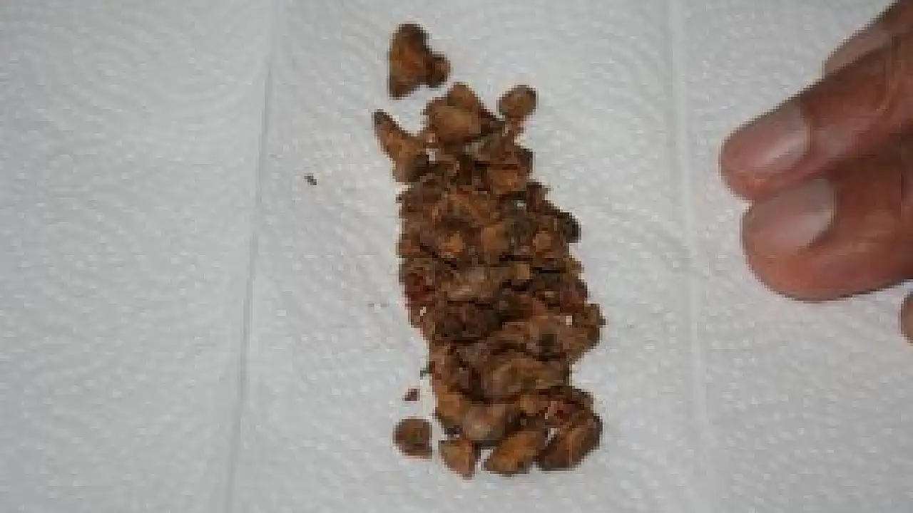 Hemen operasyona alınan Küçük'ün mesanesinden büyüklükleri 3 ila 5 santim arasında değişen 74 taş çıkartıldı.