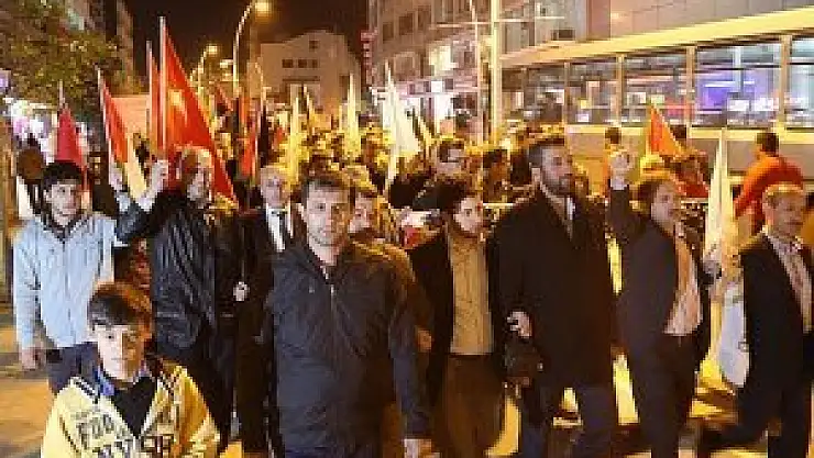 Belediye Meydanı'nda ellerinde Türk bayrakları ve dövizlerle toplanan yaklaşık 150 kişilik gurup, İsrail aleyhinde slogan attı.