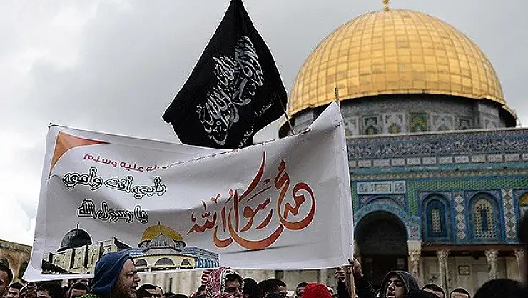 Mescid-i Aksa'da cuma namazının ardından, Fransa'daki Charlie Hebdo dergisinde Hz. Muhammed'i tasvir eden karikatürler yayınlanması protesto edildi.