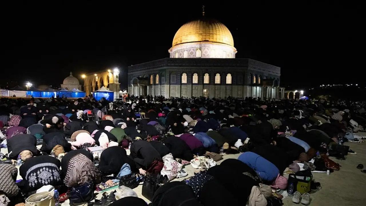 Bin aydan hayırlı olan Kadir Gecesi, Müslümanların ilk kıblesi olma özelliğini taşıyan işgal altındaki Kudüs'teki Mescid-i Aksa'da idrak edildi. Binlerce Müslüman teravih namazını kılmak için Mescid-i Aksa ve avlusunu doldurdu. İslami Vakıflar Dairesi tarafından yapılan açıklamada, Kadir Gecesi'nde yaklaşık 280 bin kişinin Mescid-i Aksa'da olduğu ifade edildi.