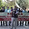 Ulu Cami önünde toplanan grup, "Barış, kardeşlik ve adalet için kendine değil, herkese Müslüman", "Siyonist işgale son, Filistin'e özgürlük" ve "Siyonizm yenilecek, direniş kazanacak" yazılı dövizler taşıyarak, İsrail aleyhine slogan attı.