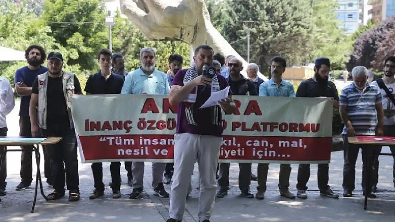 Ankara İnanç Özgürlüğü Platformu üyeleri, İsrail'in Mescid-i Aksa'ya yönelik ihlallerini, Başkentte protesto etti.