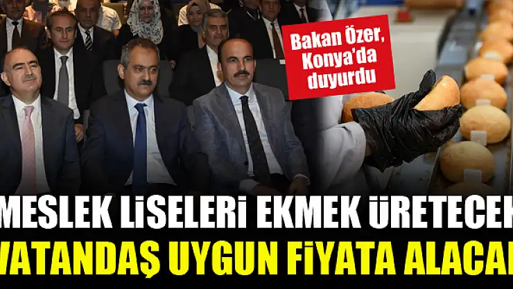 Konya'da konuşan Milli Eğitim Bakanı Mahmut Özer, önümüzdeki eğitim öğretim yılında sayıları 146'ya çıkarılacak tarım alanı bulunan meslek liselerinin, ürettiği ürünleri uygun fiyatla vatandaşla buluşacağını söyledi. Ayrıca meslek liselerinin günlük 1 milyon ekmek üretimi yapacağını ve liselerin satış büfelerinde vatandaşların düşük fiyatla ekmek almasını sağlayacaklarını ifade etti.