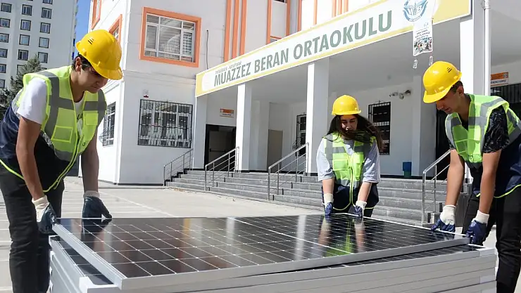 546 öğrencisi bulunan Muazzez Beren Ortaokulu'na, 'Temiz Okul Temiz Enerji Projesi' ile güneş enerjisi sistemi (GES) kurulmaya başlandı.