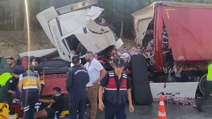 Afyonkarahisar'da meşrubat yüklü tırın inşaat demiri yüklü bir başka tıra çarpması sonucu meydana gelen kazada adeta can pazarı yaşandı. Demirlerin arkadan çarpan tırın kupasına ok gibi saplandığı kazada jandarma ve sağlık ekipleri sıkışan yaralıları çıkarmak için uzun süre uğraş verdi.