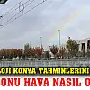 Meteoroloji verilerine göre Konya ve çevresinde havanın parçalı ve çok bulutlu, aralıklı yağmur ve yer yer sağanak yağışlı geçeceği tahmin ediliyor. Gece ve sabah saatlerinde pus ve yer yer sis hadisesi bekleniyor.