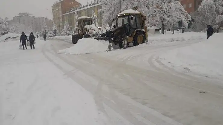 Karla mücadele ekipleri, kapalı yolların açılması, cadde ve kaldırımlarda biriken karların temizlenmesi için çalışmalarını sürdürüyor. Vatandaşlar da ev ve iş yerlerinin önünde biriken kar yığınlarını temizliyor.