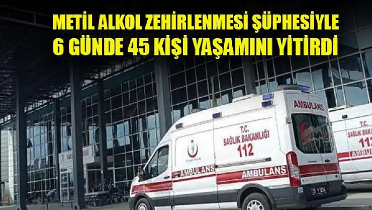 Dünden bu yana metil alkol zehirlenmesi şüphesiyle 2 ildeki hastanelere başvuran 2 kişinin daha yaşamını yitirmesiyle, ülke genelinde, 6 günde ölenlerin sayısı 45'e yükseldi.